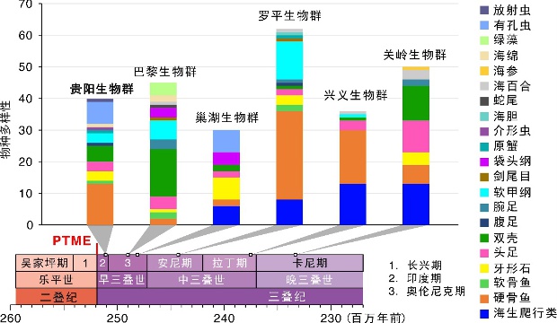 三疊紀(jì)生物群多樣性和物種組成對(duì)比 。宋海軍/供圖