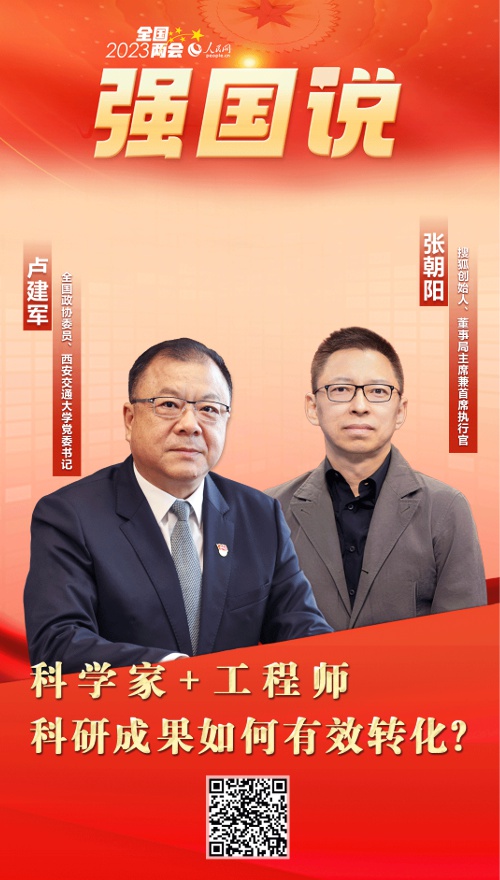 產(chǎn)學(xué)研深度融合,不僅是提高科技成果轉(zhuǎn)化與產(chǎn)業(yè)化水平的具體路徑之一,也是培養(yǎng)科技創(chuàng)新人才的關(guān)鍵手段。2023年全國兩會期間,全國政協(xié)委員、西安交通大學(xué)黨委書記盧建軍,搜狐創(chuàng)始人、董事局主席兼首席執(zhí)行官張朝陽做客人民網(wǎng)《強(qiáng)國說》欄目,就產(chǎn)學(xué)研深度融合相關(guān)話題展開對話。