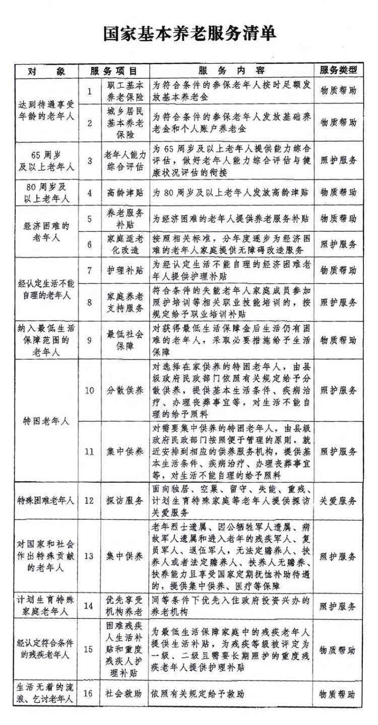 公布基本養(yǎng)老服務(wù)的國(guó)家“清單”